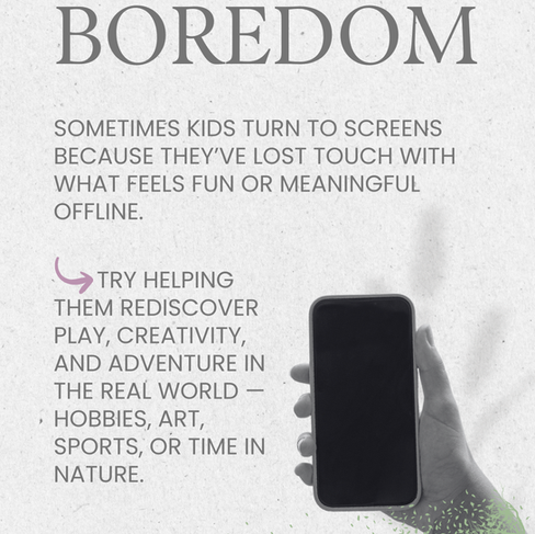 Parents often ask me how to help their kids cut down on screen time. The truth is, screens aren’t the real problem, they’re a symptom of deeper needs. Here are 4 underlying reasons why kids and teens often turn to screens. Understanding those reasons can make change feel easier and more natural.